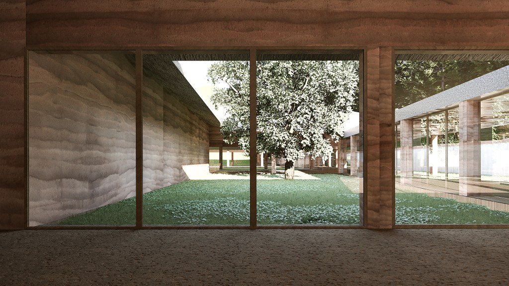 Rammed earth technique is used to realize a two-fold purpose: approximate the domestic space of traditional Korea and to embed a symbolic gesture to unite different sites of war tragedy that will also be represented in this memorial park. The latter will be achieved through using soil samples from excavation and trauma sites from Korea.