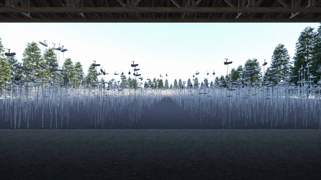 To remain true to its concept of an ever-evolving site of remembrance, the Unfinished memorial site envisions numerous future interactions and a place of mourning that is always accessible to all. Interaction with people will be realized through a variety of actions such as making and placing the memory poles behind the Memorial Hall, a Mosi-fabric workshop area on the site and the strategic development of the landscape approach. Acts of mourning such as tying ribbons and leaving offerings are encouraged and can potentially be collected and archived in the future museum of the site-specific exhibition pavilion. The very process of the site evolution through interaction will constitute a documentary aspect and can feature prominently in the future management policy for the whole memorial park.